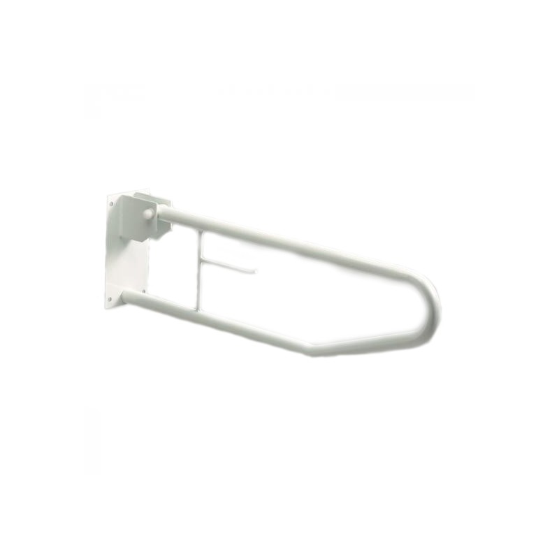 Barre d'appui relevable en acier recouvert de plastique assurant une haute résistance à la corrosion. Elle permet d'aider à asseoir ou à relever une personne, et facilite le transfert d'une personne en fauteuil roulant.