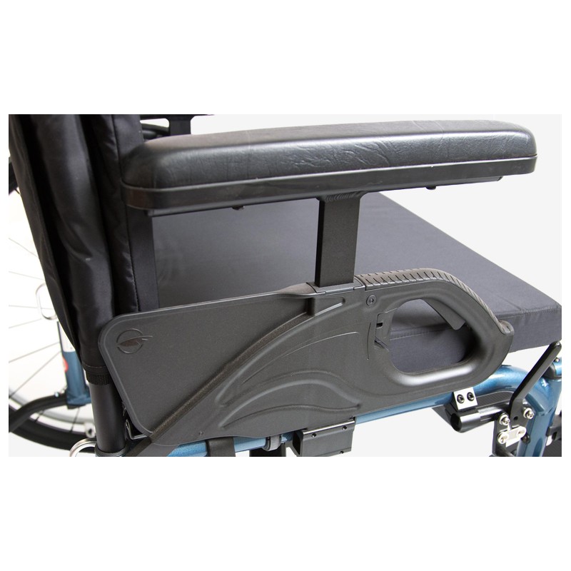 Les appuis-bras rabattables sont rapidement convertibles en tige unique pour facilité la configuration et le réglage en hauteur.